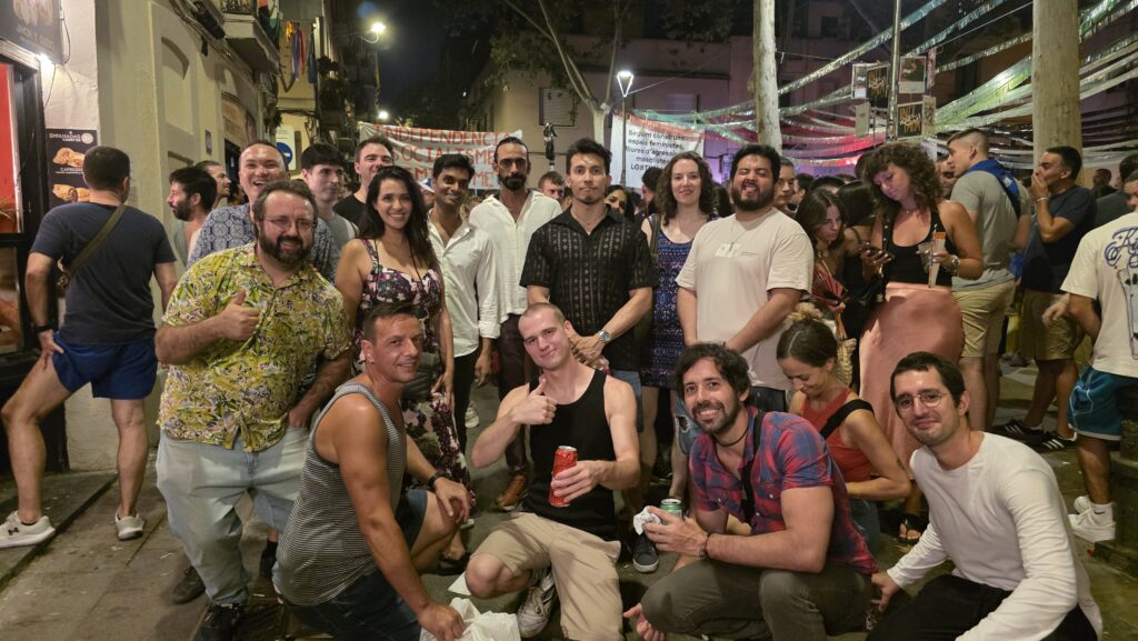 On the third day of Barcelona’s Fiestas de Sants 2025, our group kept the celebration alive with more music, drinks, and dancing in the colorful streets of Sants. Another unforgettable night filled with laughter, culture, and international friendship.